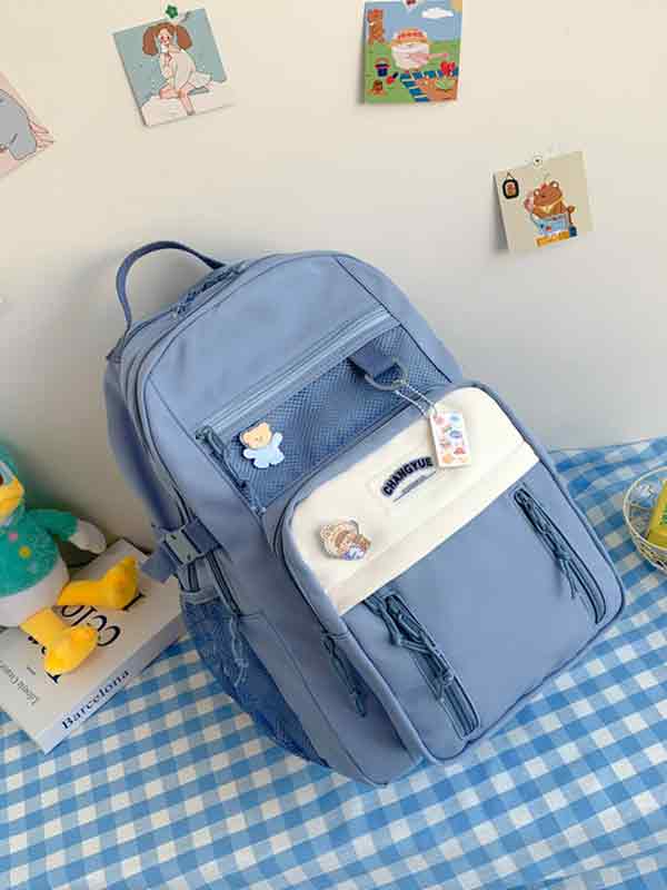 Lässiger Rucksack mit Netztaschen und Farbblockdesign
