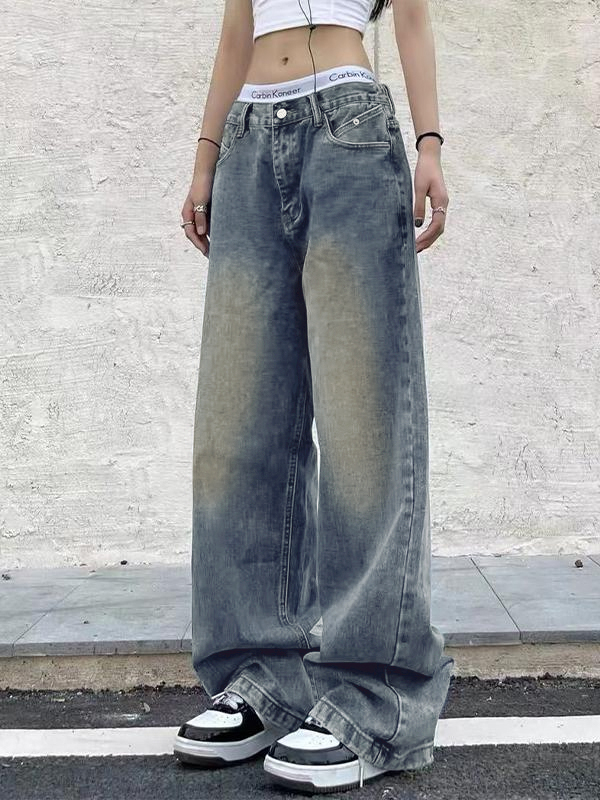 Vintage Blaue Boyfriendjeans mit weitem Bein