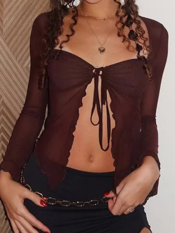 Geripptes, langärmliges Minikleid zum Binden vorne