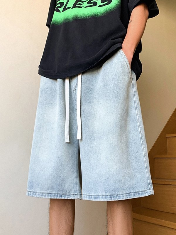 Locker geschnittene Denim-Shorts für Herren in Basic-Waschung