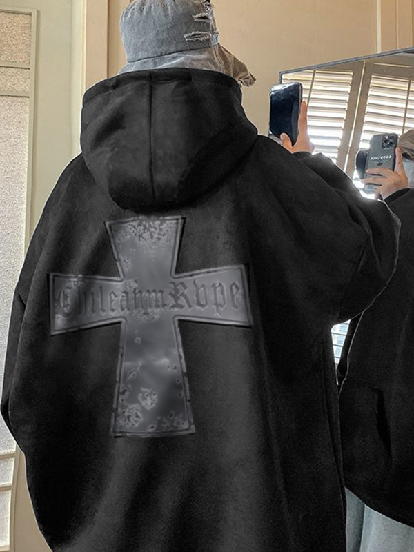 Übergroßer Kapuzenpullover mit Kreuzmuster aus Wildleder für Herren