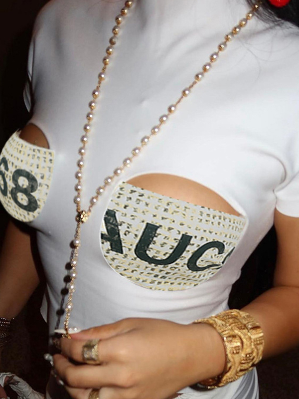 Genähtes Kurzarm-Logo-Grafik-T-Shirt
