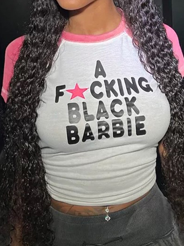 Kurzärmliges T-Shirt mit Buchstaben-Print in Farbblock-Optik