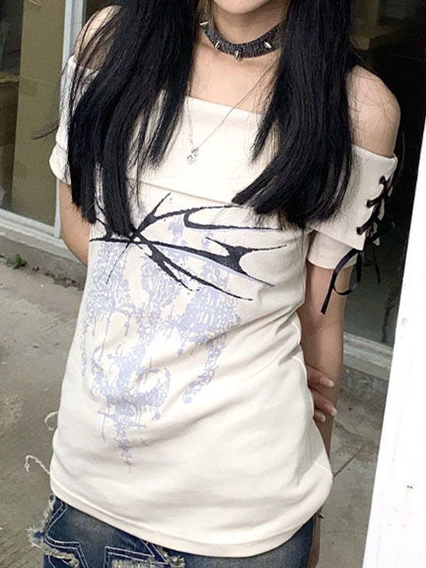 Kurzarm-T-Shirt mit One-Shoulder-Print