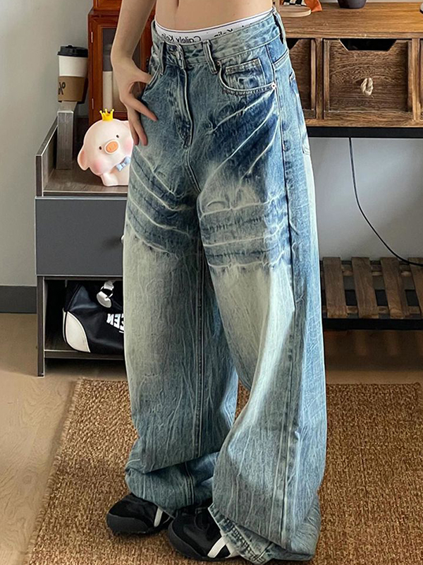 Wasserwaschende, alternde Boyfriendjeans im amerikanischen Stil