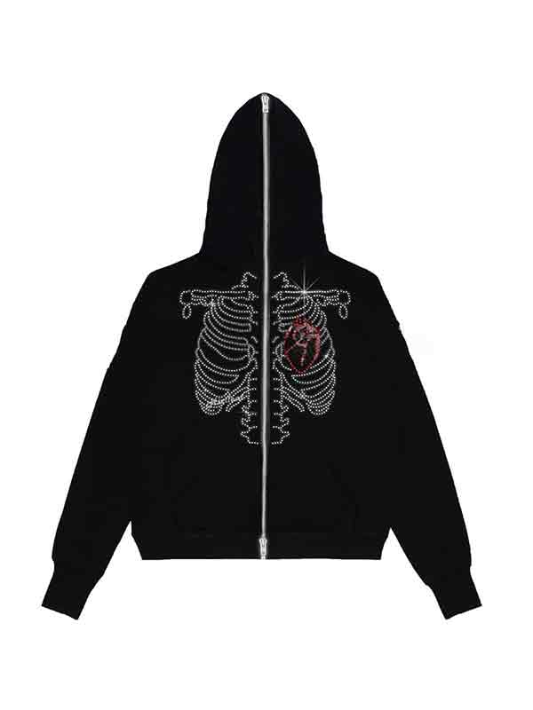 Übergroßer Kapuzenpullover mit Totenkopf-Strass-Print für Herren