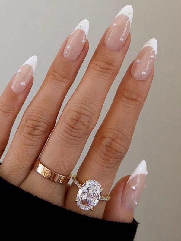 24 Stück Faux Pearl Decor Weiße Kunstnägel