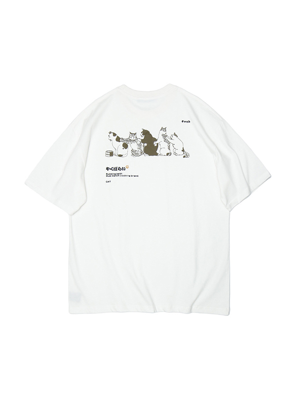 Übergroßes Kurzarm-T-Shirt mit Katzenmuster