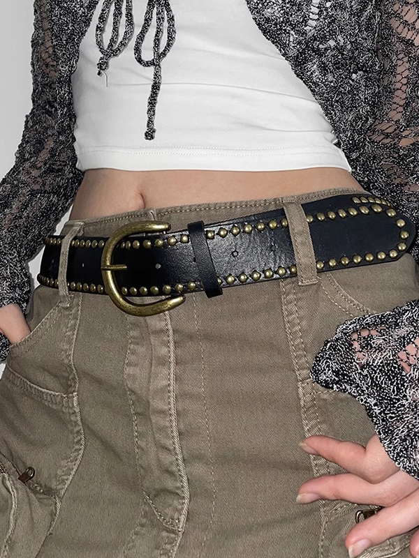 Einfarbiger Vintage-Gürtel mit Nietendekor und Schnalle