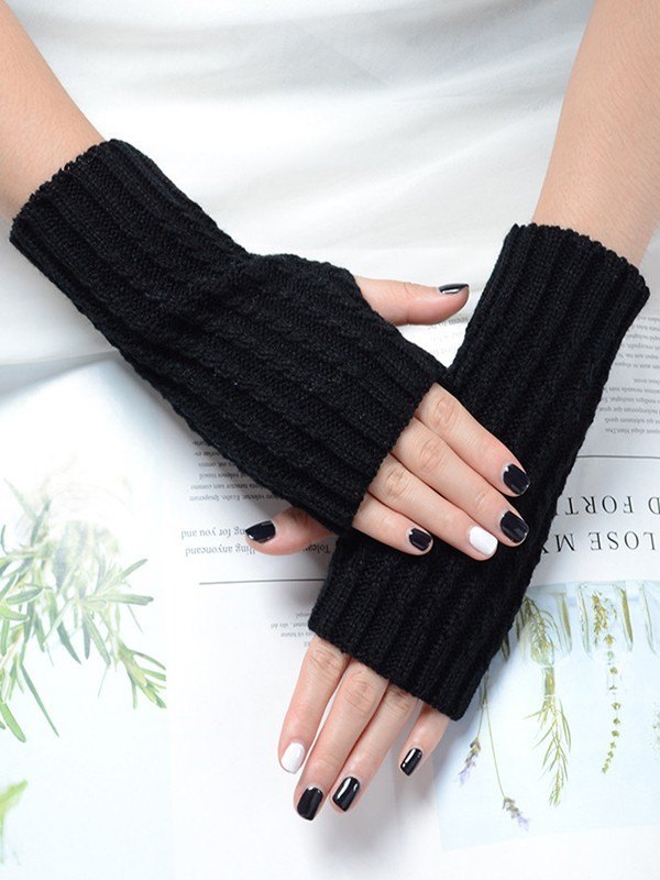 Fingerlose Strickhandschuhe mit Daumenlochdetail