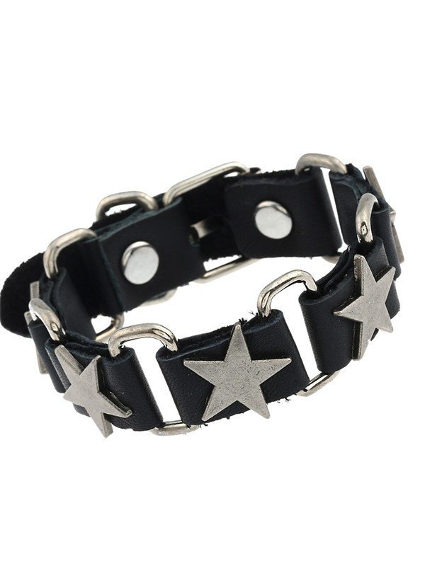 Metall-Stern-Charme-Pu-Leder-Armband