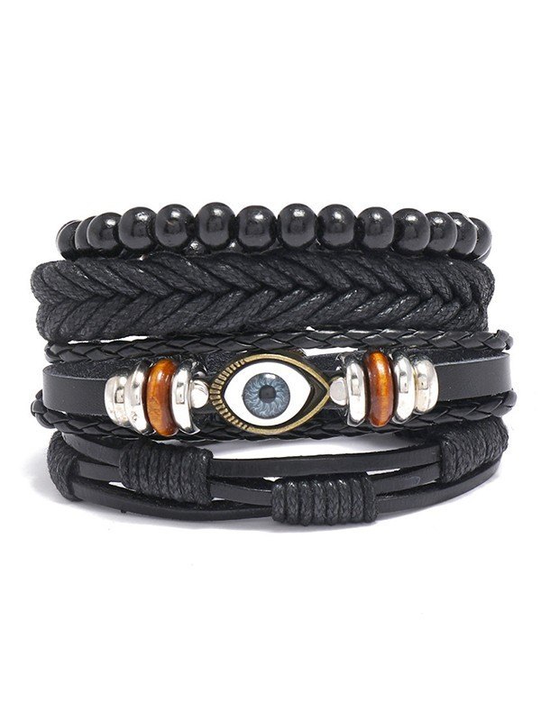 4pcs Boho geflochtenes Pu-Leder-Armband-Set