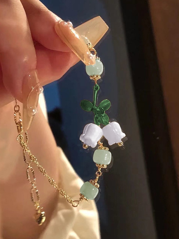 Verstellbares Gliederarmband mit Blumenanhänger aus Jadeimitat