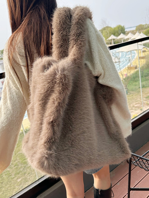 Übergroße Einkaufstasche aus Fuchspelz