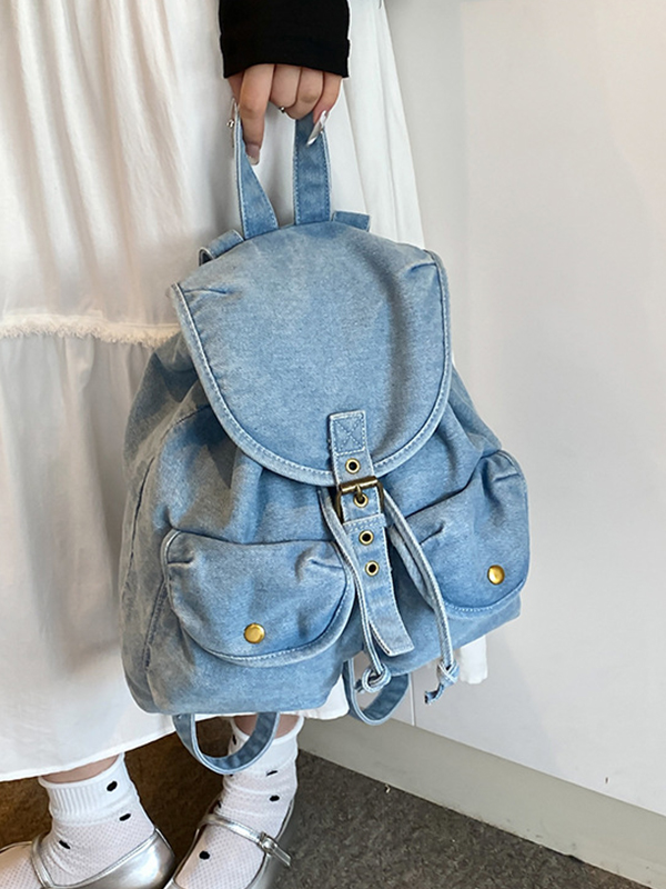 Großer Denim-Rucksack mit mehreren Taschen