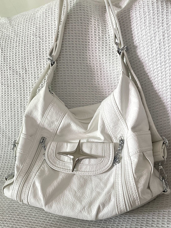 Schultertasche aus Leder mit Metall-Sterndekor und großem Fassungsvermögen