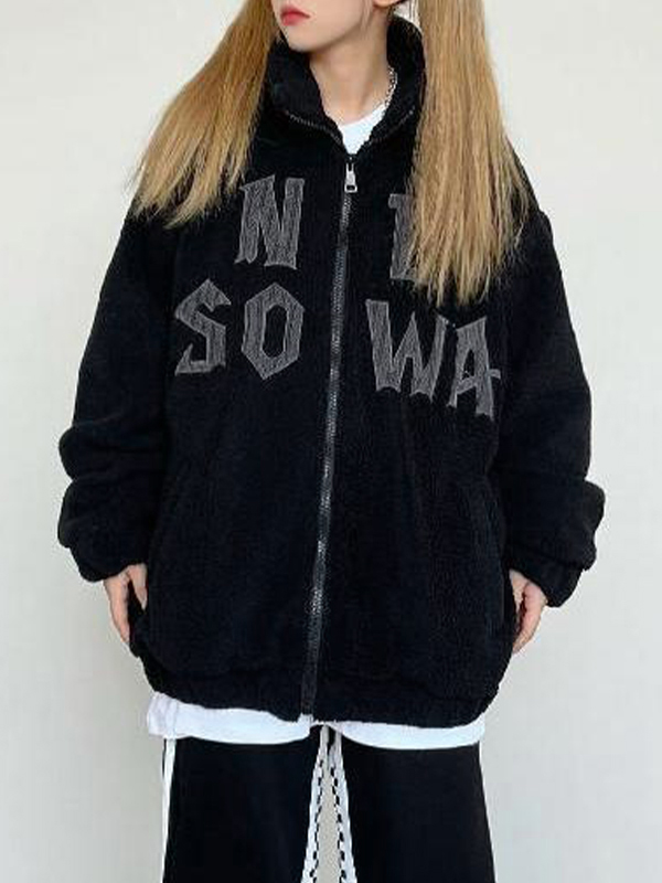 Sexy Hot Girl Pelzkragen Brief Print Langarm