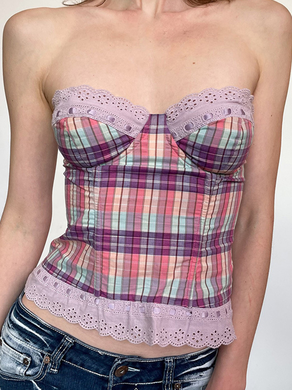 Buntes, kurzes Bandeau-Top aus Spitze