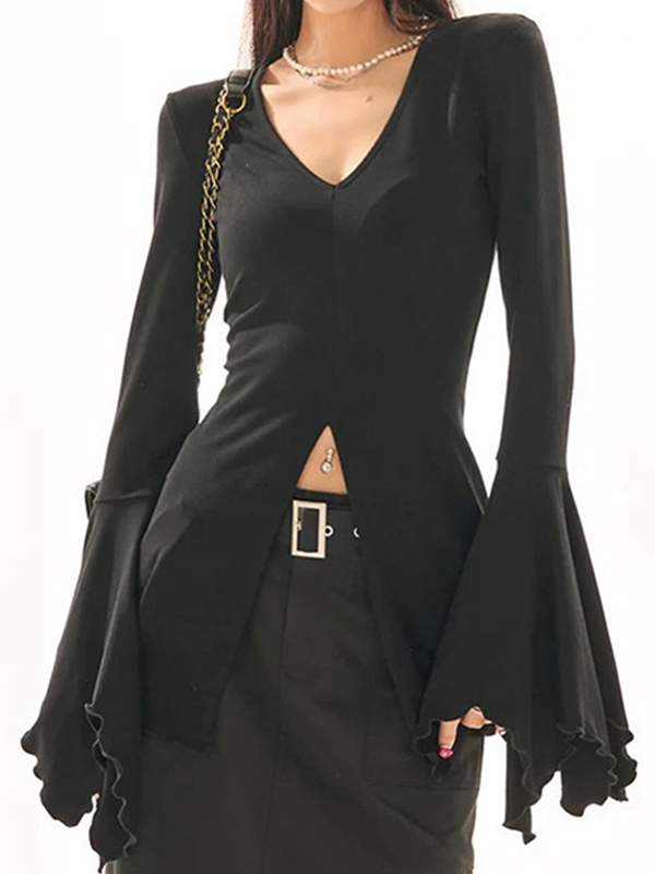 Langärmliges T-Shirt mit ausgestellten Ärmeln und Schnürung