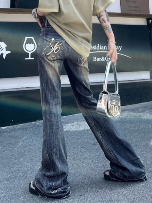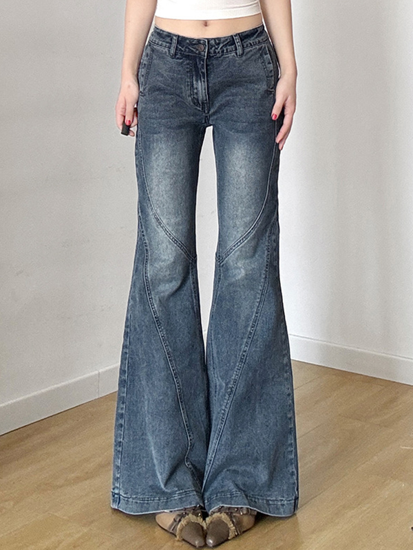 Vintage-Schlagjeans mit niedriger Taille und Schlitz
