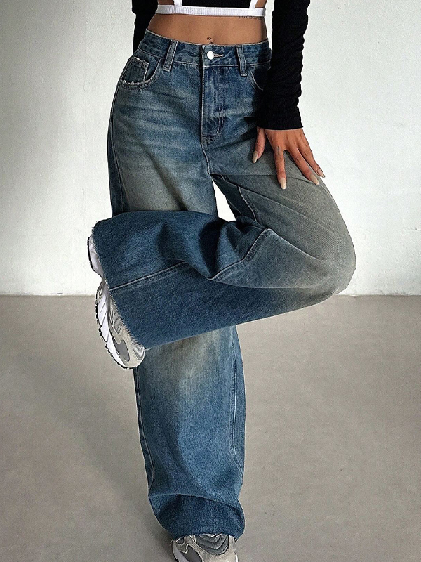 Vintage blau gewaschene Boyfriend-Jeans mit hoher Taille