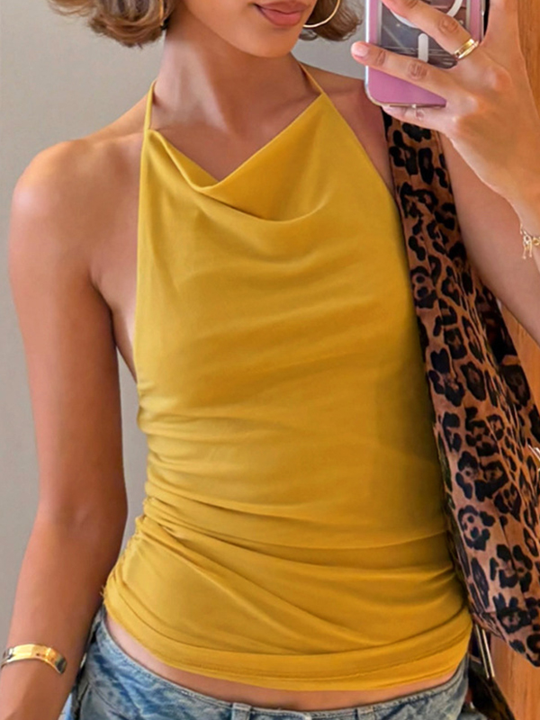 Neckholder-Weste im Urlaubsstil mit Jacquard-Ausschnitt