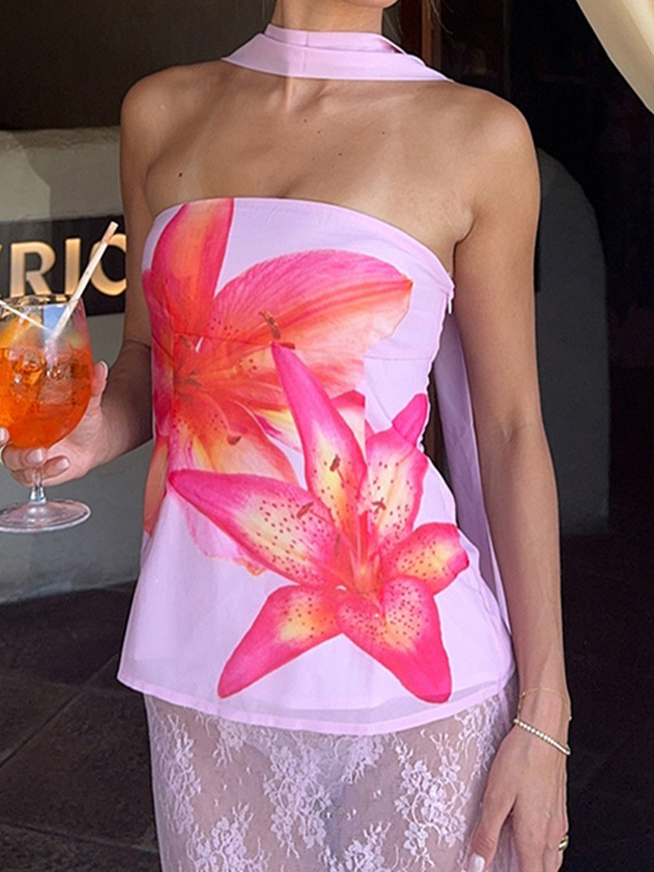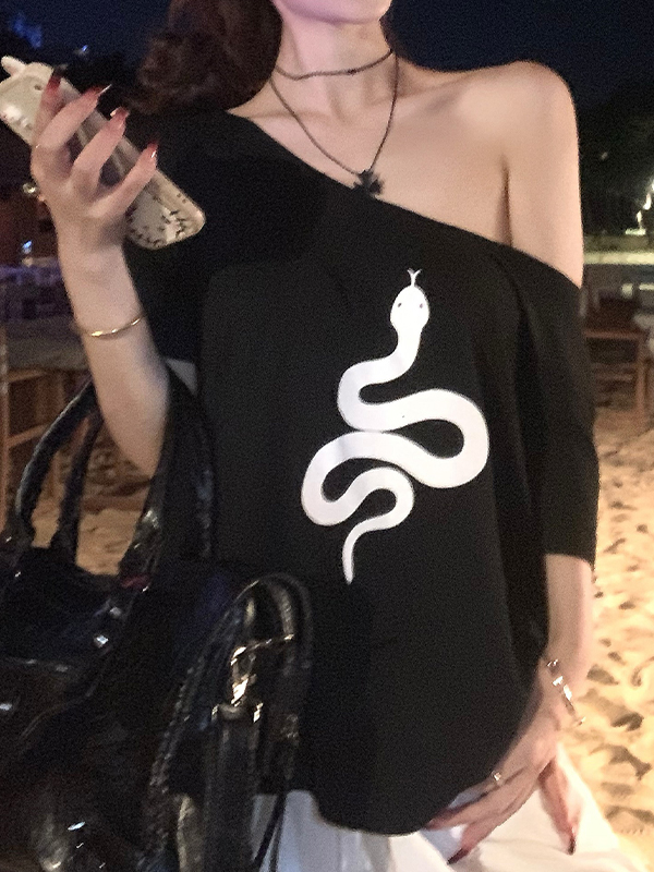 One-Shoulder-T-Shirt mit digitalem Druck und kurzen Ärmeln