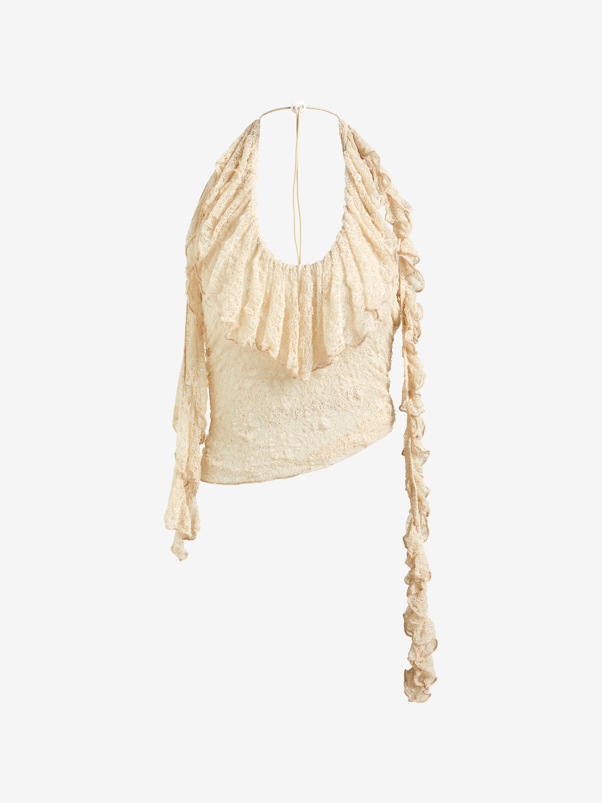 Durchsichtiges Minikleid mit gerüschter Schulterpartie und Kordelzug