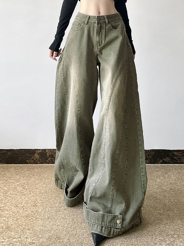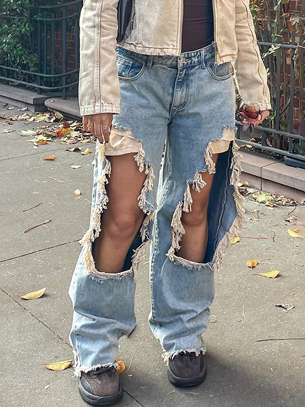 Street Distressed-Jeans mit gerafftem Spleiß und niedriger Taille