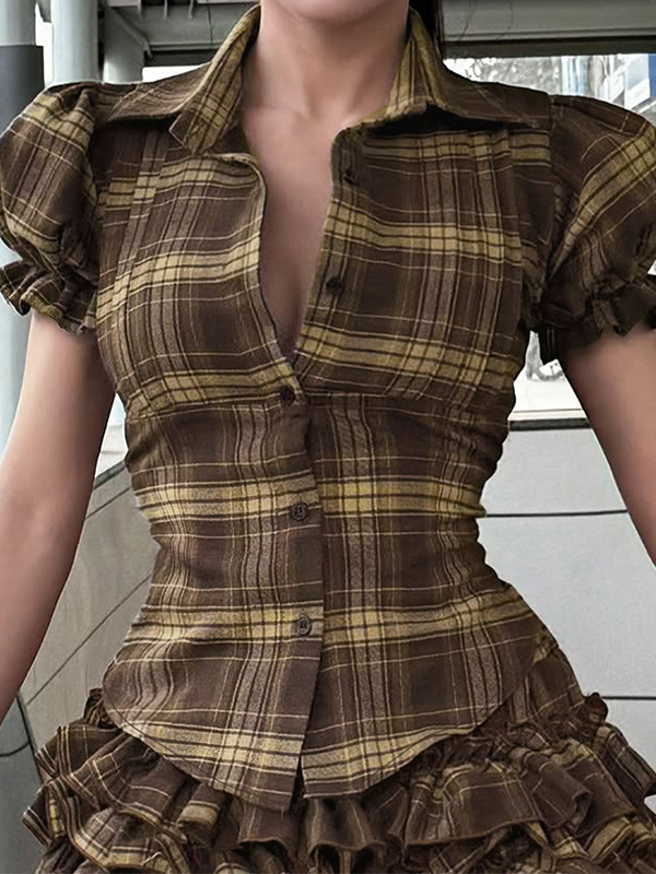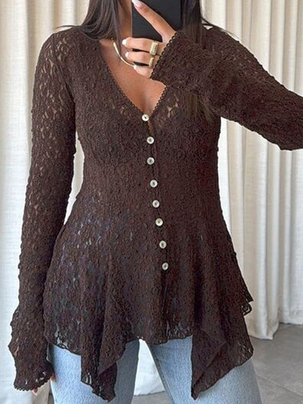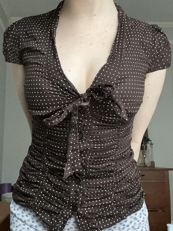 Retro Plissee V-Ausschnitt Langarm