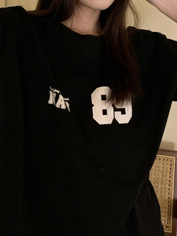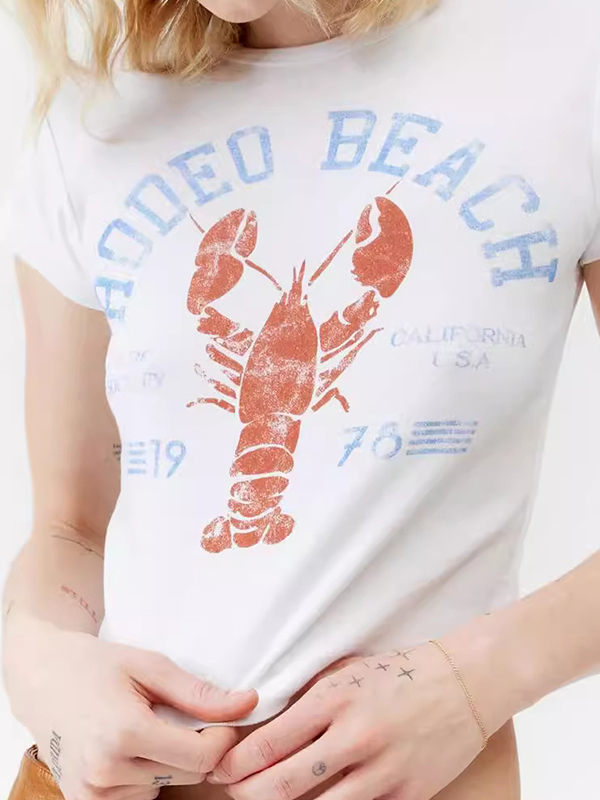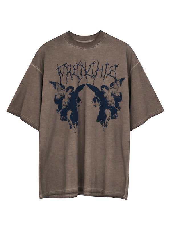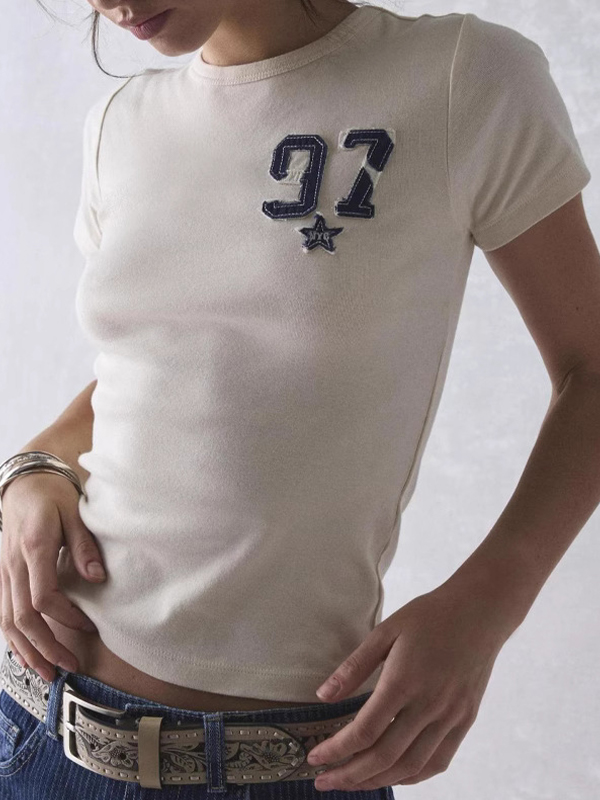 Genähtes Kurzarm-Logo-Grafik-T-Shirt