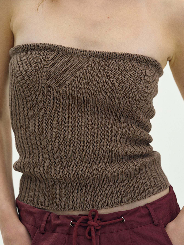 Geripptes Crop-Top mit Slash-Ausschnitt