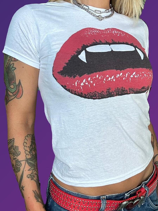 Kurzärmliges T-Shirt mit „Cherry Lips“-Print