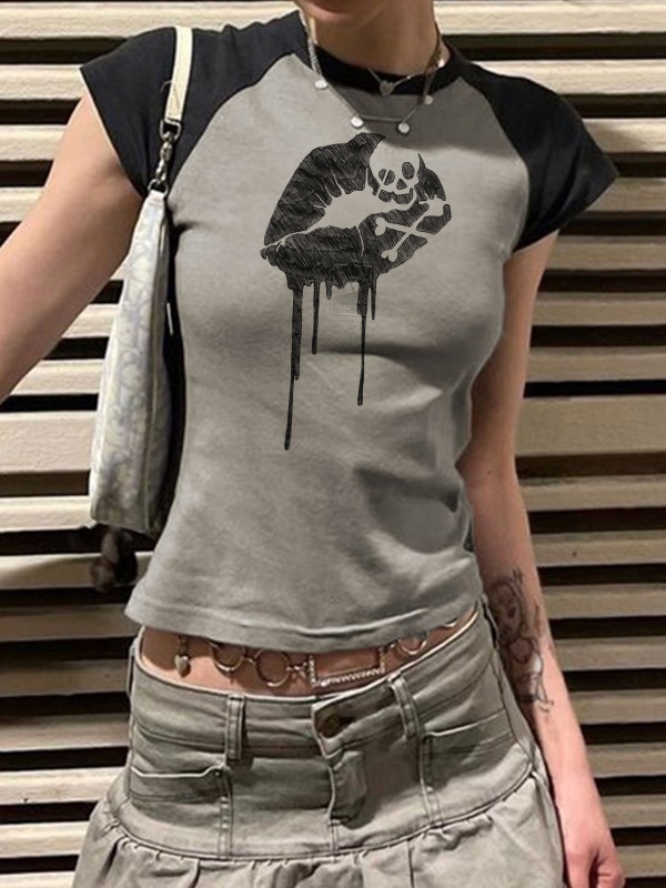 Gothic Punk bedrucktes Ripp-Crop-Tanktop