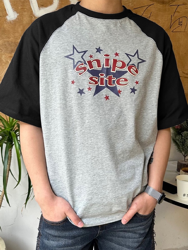 Übergroßes Kurzarm-T-Shirt mit Raglanärmeln und Aufdruck für Herren