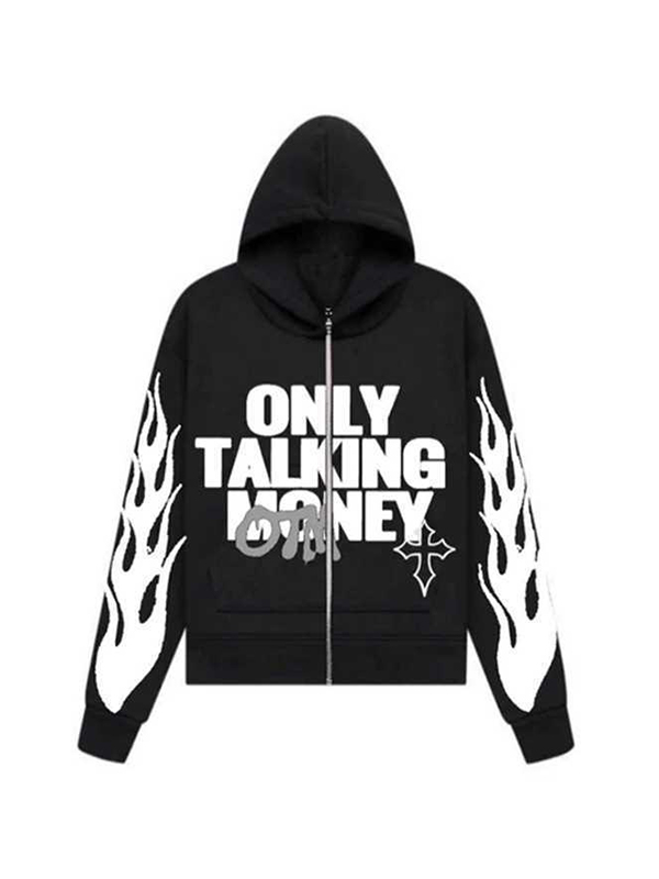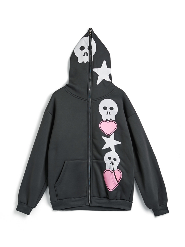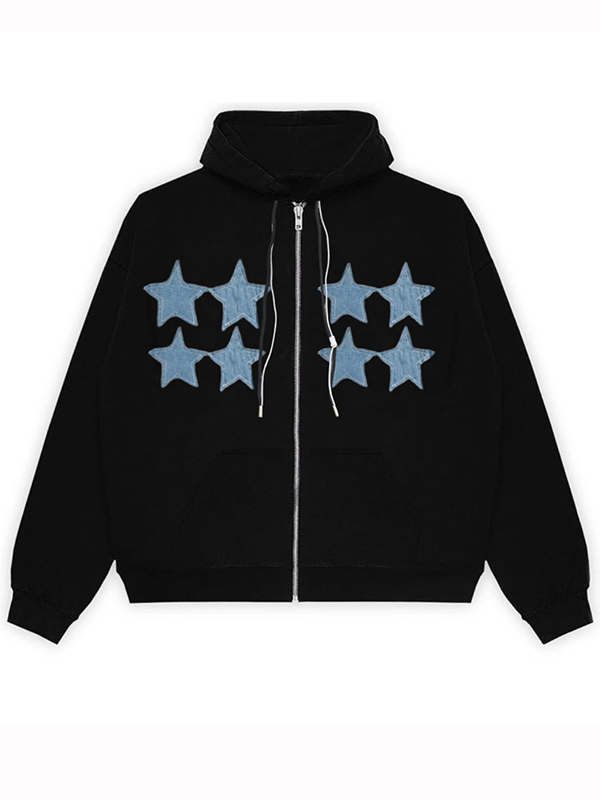 Herren-Kapuzenpullover mit Vintage-Stern-Kreuz-Print und Reißverschluss
