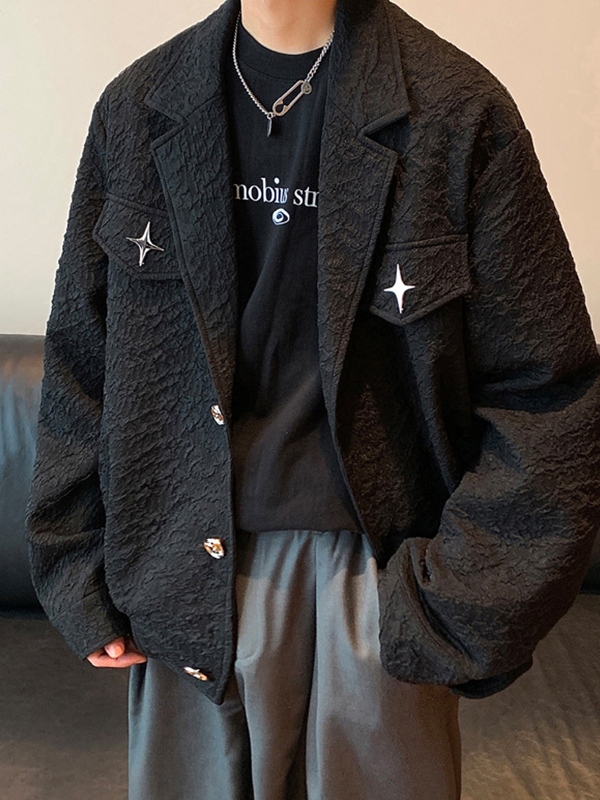 Herren-Cargo-Jacke mit ausgehöhlter Sternenstickerei und dünner Passform