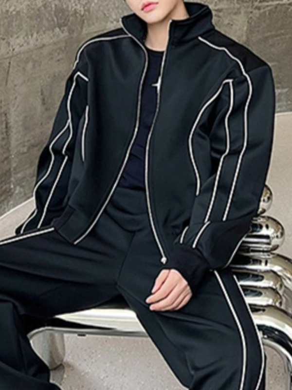 Herren-Spleißjacke mit Vintage-Stickerei und Reverskragen