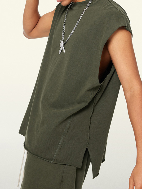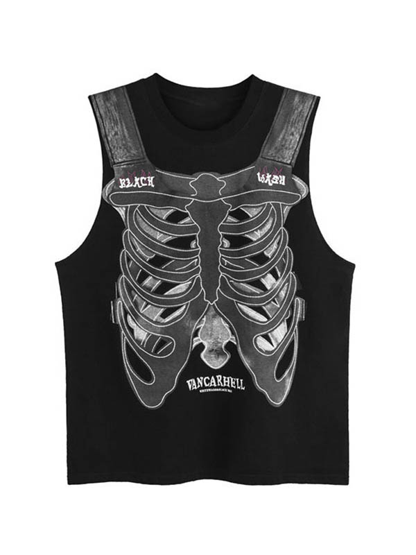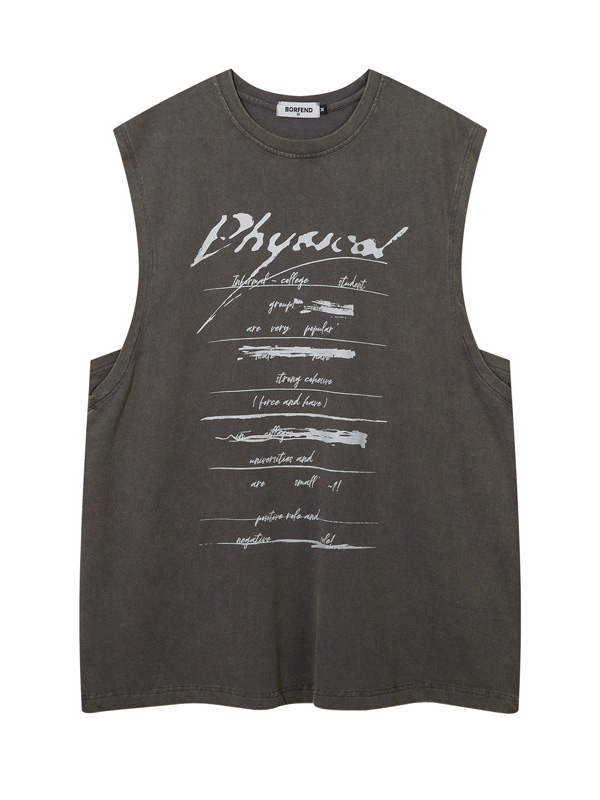 Herren-Weste mit Vintage-Distressed-Portrait-Print und zerrissenem Saum