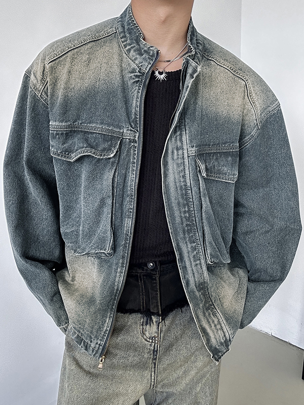 Vintage-Jacke mit Reißverschluss und großen Taschen