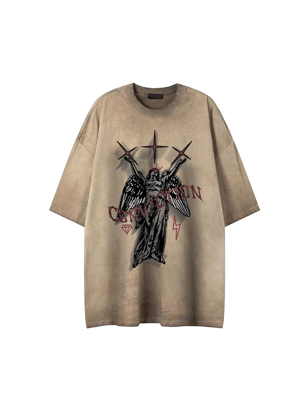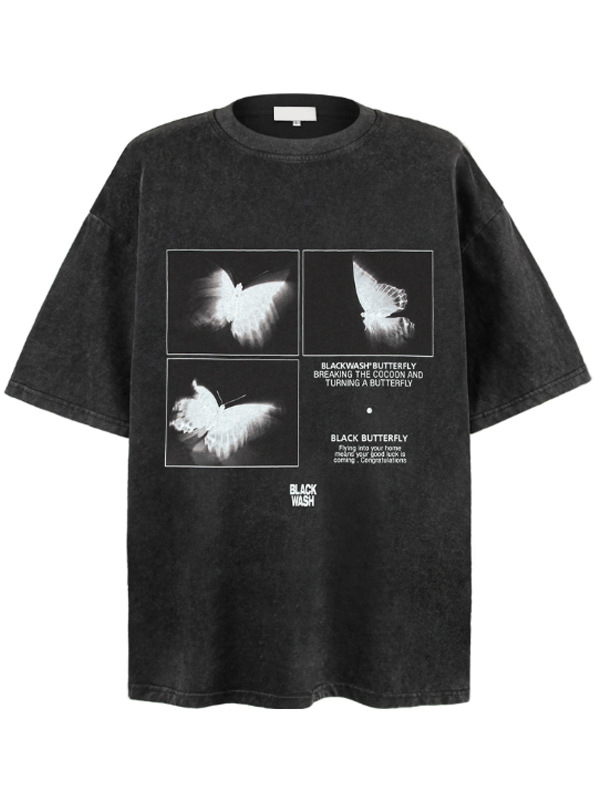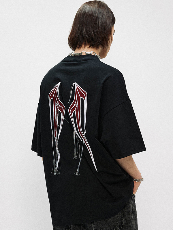 Übergroßes Kurzarm-T-Shirt mit Flügel-Print für Herren