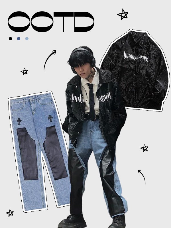 Herrenjeans mit Kreuzabzeichen und Strasssteinen