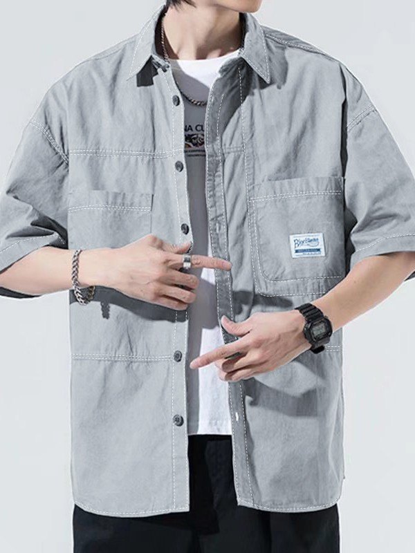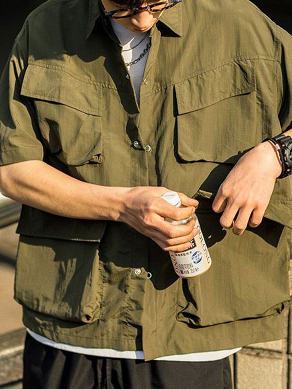 Lässige Kurzarm-Taschendekoration im japanischen Stil