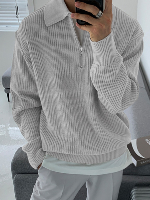 Herren-Strickpullover mit halbem Reißverschluss und Revers