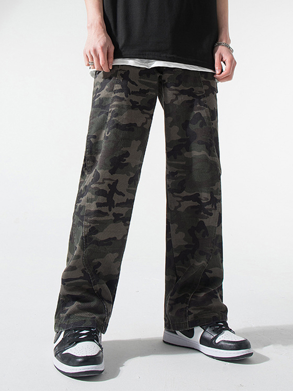 Lockere Jeans im American Retro Heavy Industry-Stil mit gewaschenem Bambusmuster