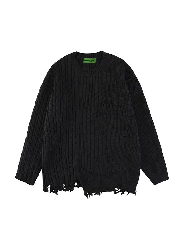 Zopfmuster-Pullover im Distressed-Stil für Herren