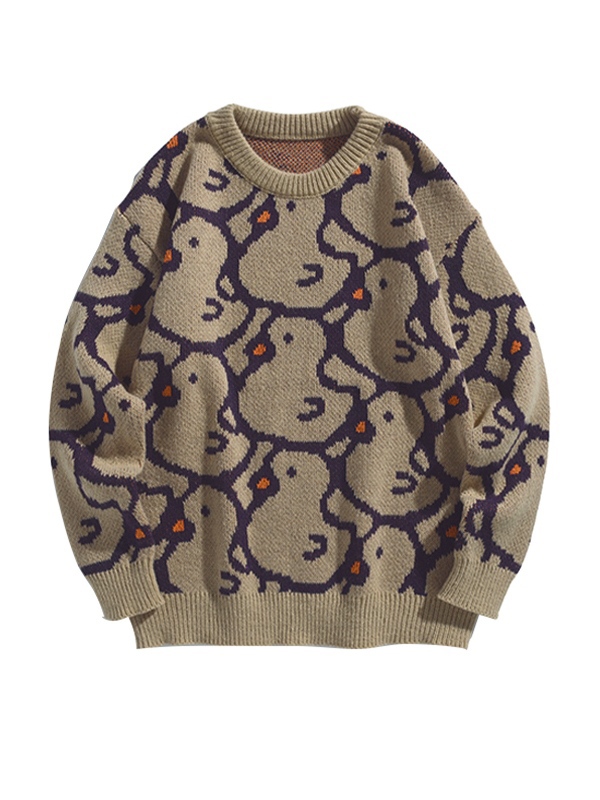 Herren-Strickpullover aus All-Over-Duck-Jacquard mit Rundhalsausschnitt