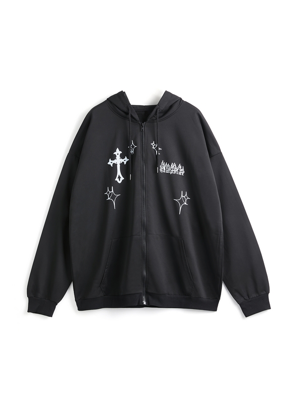 Herren-Kapuzenpullover mit Vintage-Stern-Kreuz-Print und Reißverschluss