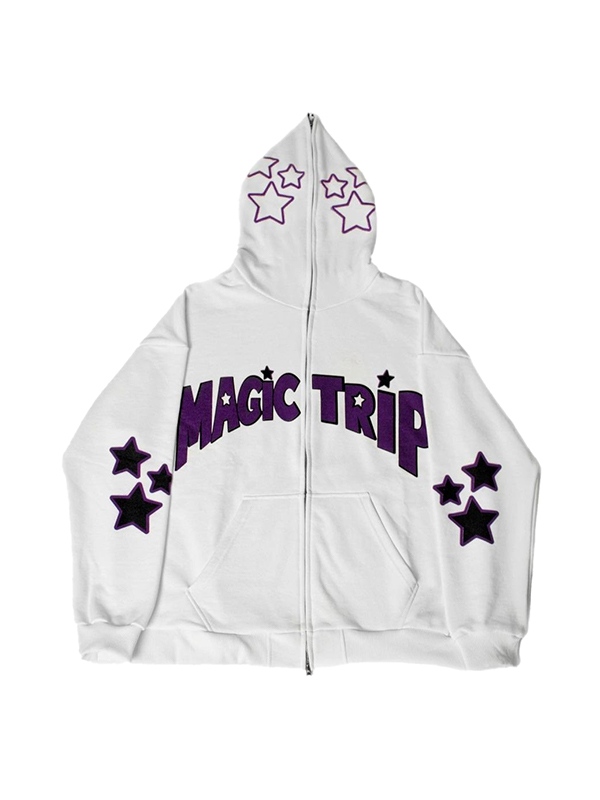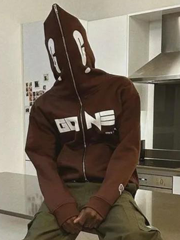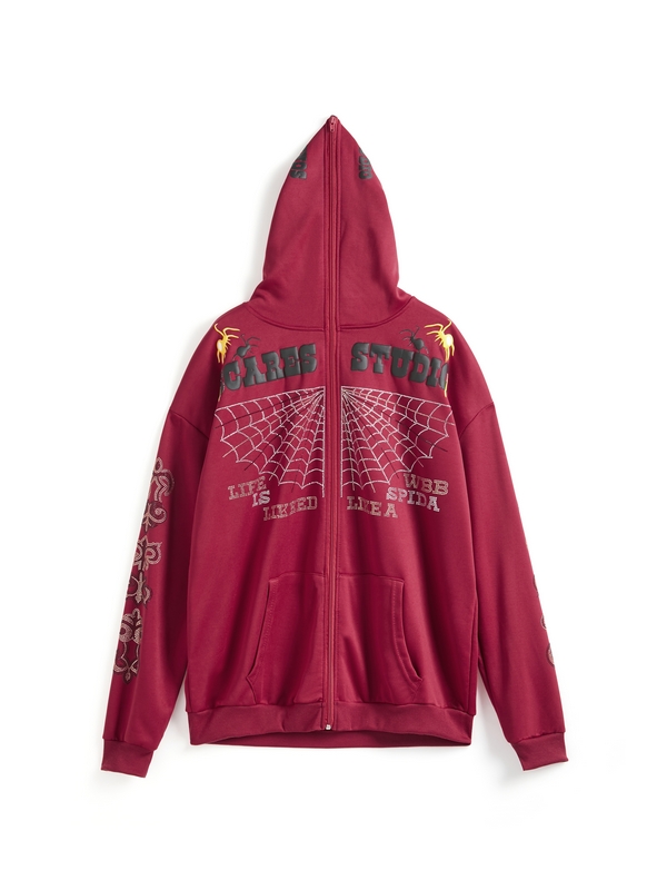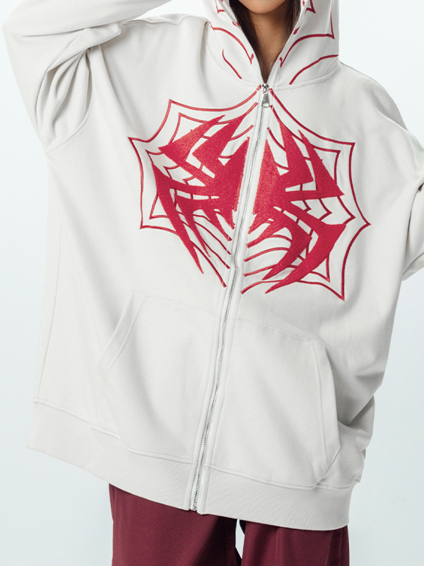 Kontrastfarbener, übergroßer Kapuzenpullover mit Spinnenmuster und durchgehendem Reißverschluss