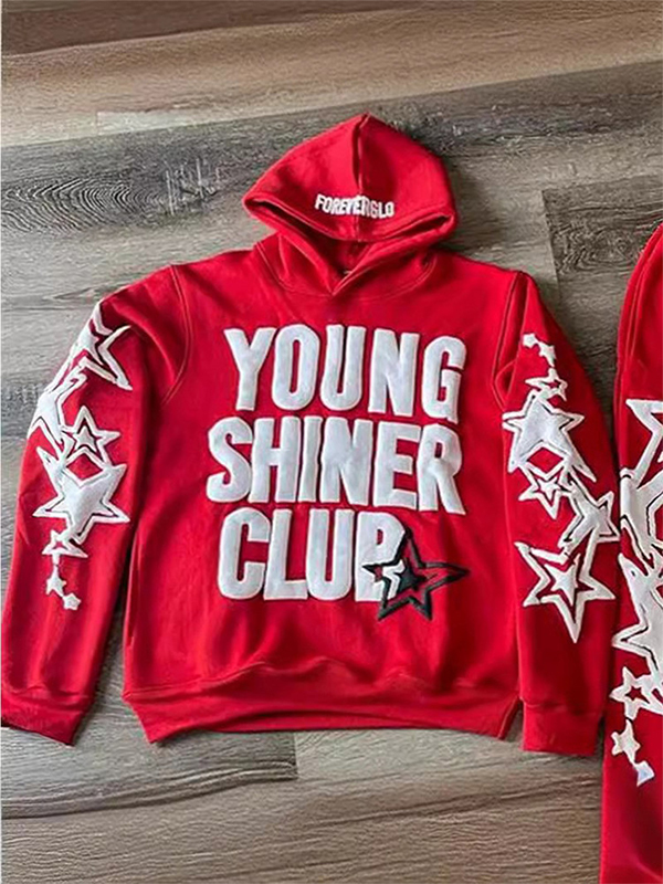 Übergroßer Kapuzenpullover mit Stern-Schriftzug und langen Ärmeln für Herren